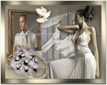 15 - Activer le tube "love-mm66-tube-colombe.psimage" Edition/Copier/Édition/Coller comme nouveau calque Image/Redimensionner à 85%/décocher " tous les calques" Placer comme sur l'image finale Effets/Effets 3D/Ombre Portée : 5/5/50/30/noir