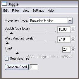 22 - Retourner dans votre PSP 23 - Annuler l'animation 24 - Effets/ filtre Eye Candy 4000/jiggle : clic sur Random Seed25 - Edition/Copier 26 - Edition/Coller après l'image active