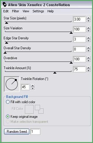 27 - Retourner dans votre PSP 28 - Annuler les deux dernières commandes 29 - Effets/Xenoflex 2/Constellation : clic sur Random Seed Sélection/Désélectionner