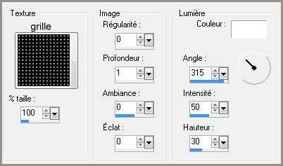 4 - Effets/Effets de Texture/Texture réglages suivants :