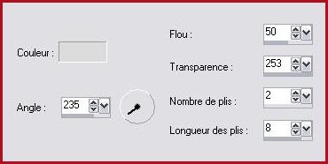 17 - De nouveau activer le tube flower 18 - Edition/Copier 19 - Edition/Coller comme nouveau calque 20 - Placer sur le côté gauche 21 - Calques/Dupliquer 22 - Activer le calque original 23 - Réglages/Flou/Flou gaussien : rayon : 30 24 - Calques/Fusionner les calques visibles 25 - Effets/Xero/Fritillary avec ces réglages :