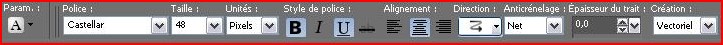 25 - Activer l'outil Texte/Police Vivaldi/taille : 48/Bold/Underline/Vectoriel avant-plan fermé /couleur arrière-plan #800000