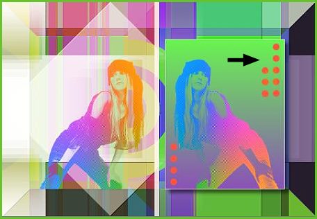 **Placer en avant-plan la couleur #68f550 et en arrière-plan la couleur #8b51b8Dans la Palette de Style Configurer un dégradé linéaire angle: 0°/Répétition: 0/Inverser coché Remplir la sélection Sélection/Ne rien sélectionner