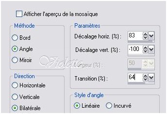 15 - Effets/Effets d'image/Mosaïque sans jointure avec ces réglages: