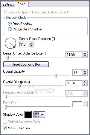 Opacité à 65% 6 - Sur le calque du masque Effets/Eye Candy 5 Impact/ Perspective Shadow / Drop Shadow Blurry Onglet Basic: