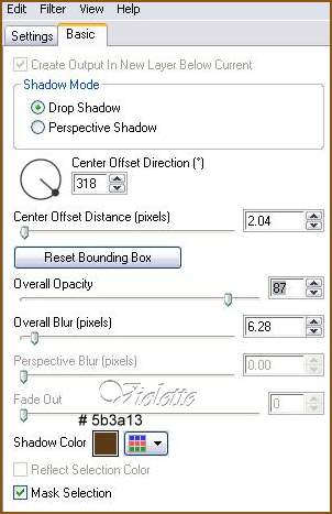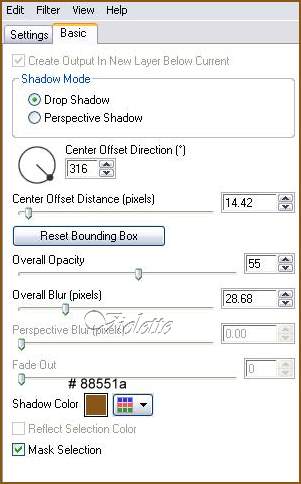 11 - Effets/Eye Candy 5 Impact/ Perspective Shadow / Drop Shadow Lowest onglet Basic: avec ces réglages