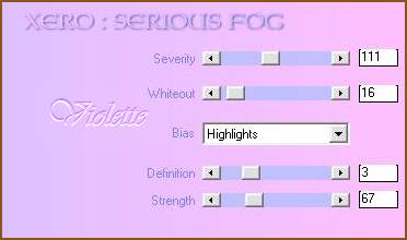17 - Activer le tube personnage de nouveau Edition/Copier/Edition/Coller comme nouveau calque Placer sur la droite Répéter l'effet/Xero/Serious Fog Mode du calque : Lumière douce Dupliquer cette couche