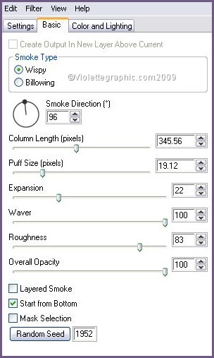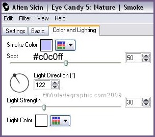 6 - Activer le calque du fond Effets/ Eye Candy 5 Nature / Smoke Onglet Settings : Large, Purple Haze