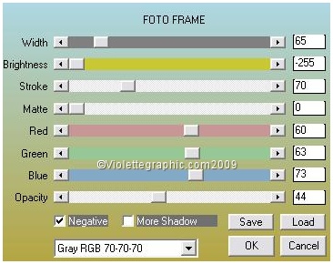 11 - Image /Ajouter des bords : 1 pixel couleur #ffffff 12 - Image /Ajouter des bords : 55 pixels couleur #b39f8c 13 - AAA Frames / Foto Frame avec ces réglages :