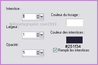 5 - Effets/Effets de Texture/Textile réglages ci-dessous: