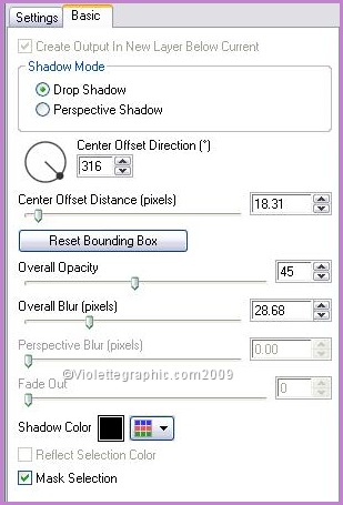 21 - Eye Candy 5 Impact/Perspective Shadow/Drop Shadow, Blurry Onglet Basic:overall opacity 45 /overall blur 28.68 /couleur #000000