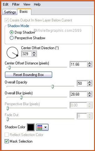 Effets/ Eye Candy 5 Impact/Perspective Shadow/Drop Shadow Blurry Onglet Basic :