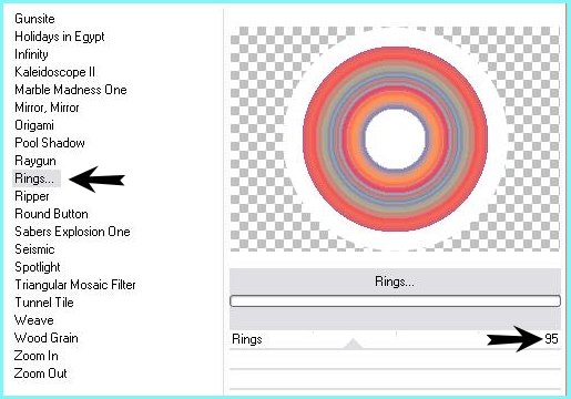 5 - Effets/ Filter Factory A/ Rings : 95 * Attention: si les filtres Factory sont installés dans Unlimited Importer le filtre : Rings : 86