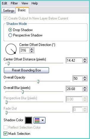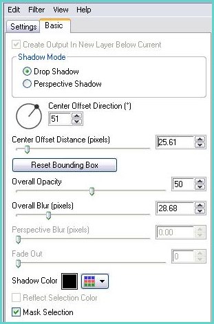 16 - Effets/Eye Candy 5 Impact /Perspective Shadow/ Drop Shadow Blurry Onglet Basic: