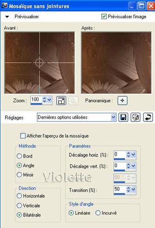 Image/Miroir/ Placer en haut à droite /Opacité à 74%