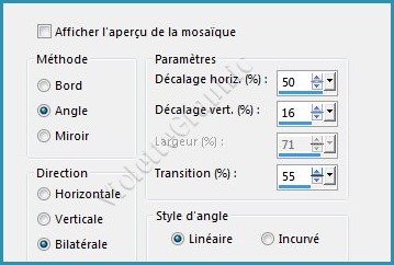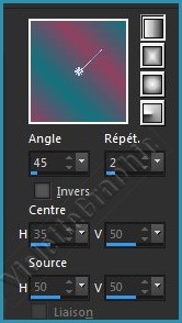 linéaire/Angle: 45/ Répétitions: 2/Inverser non coché