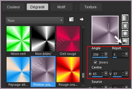 radial/angle: 359°/ Répétitions : 5/Inverser coché