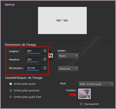 - Fichier/Nouvelle image 900 x 500 pixels et choisissez immédiatement le dégradé