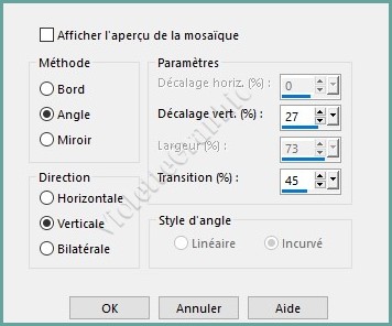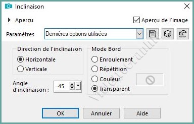 **Effets/Effets Géométriques/Inclinaison réglages suivants