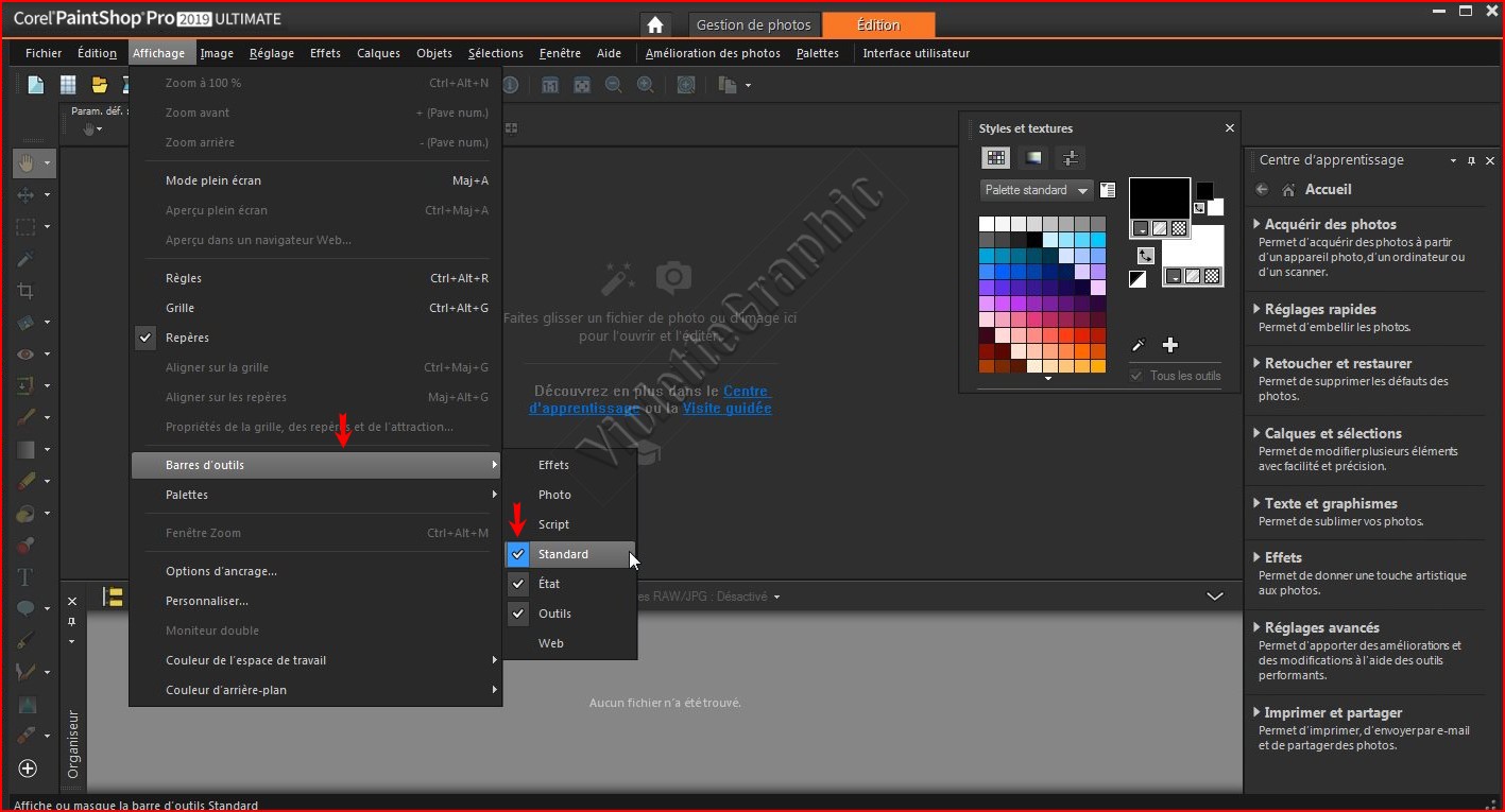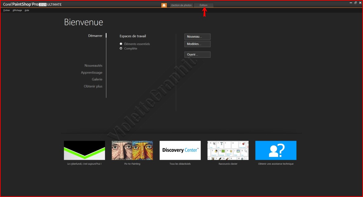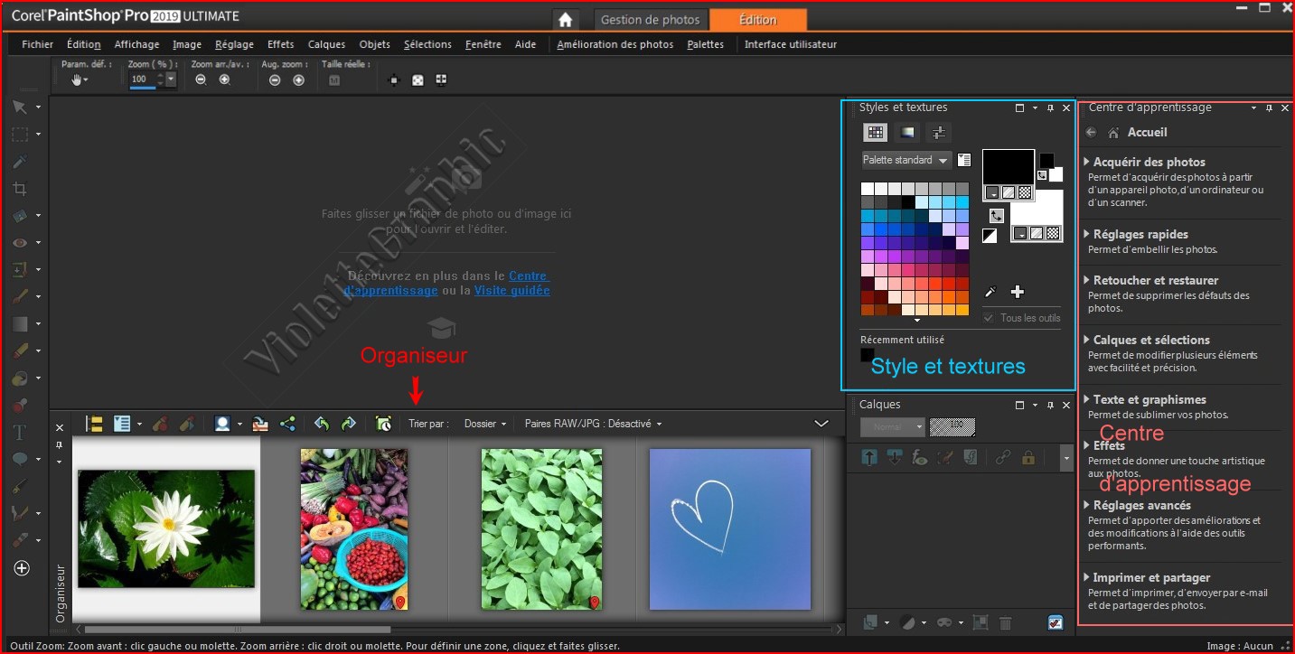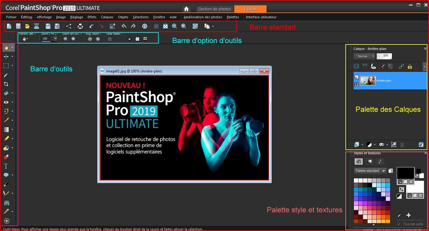 Présentation de l'interface du logiciel Paint Shop Pro Version 2019