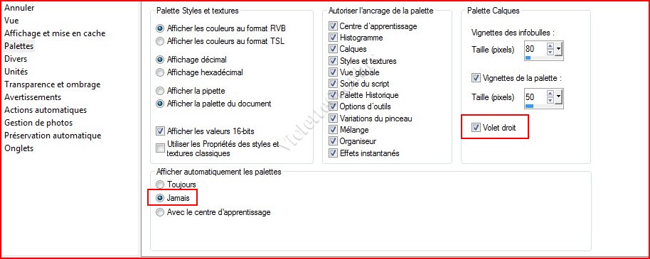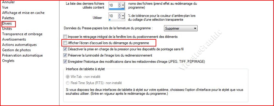Fichier/Préférences/Générales