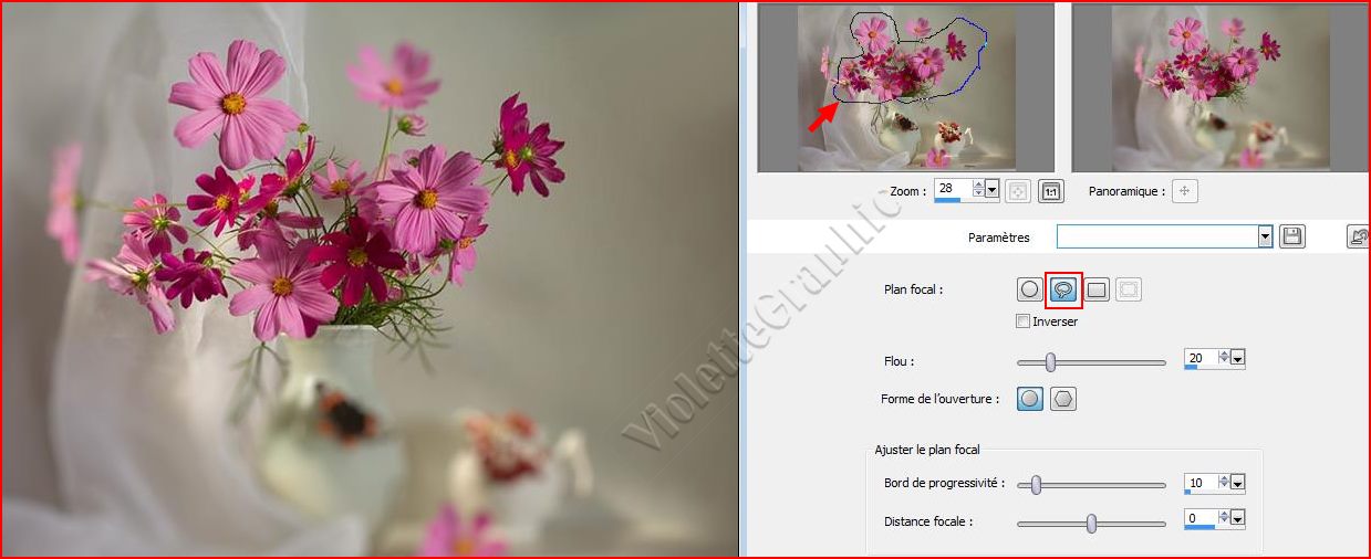 Tracer un cercle sur la partie de l'image à conserver nette: