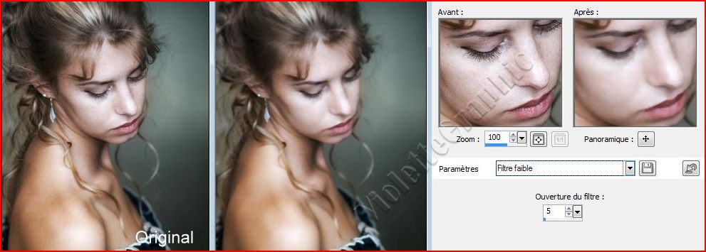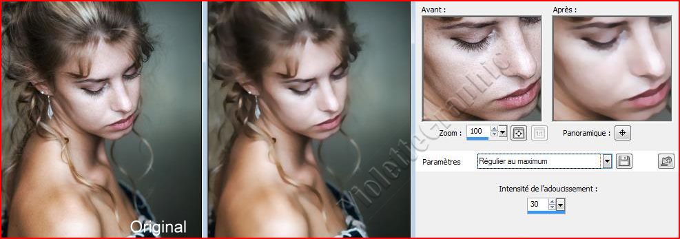 Entrez ou définissez une valeur dans la zone Intensité de l’adoucissement Sélectionnez l’intensité d’adoucissement la plus faible permettant de supprimer les taches tout en conservant les détails de l’image Cliquez sur OK
