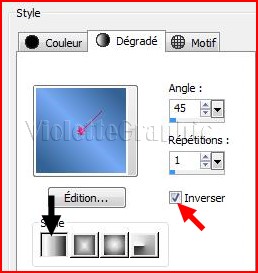 **Calques/Nouveau calque remplir de dégradé linéaire angle: 90°/Répétition: 1/Inverser coché