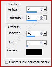 ** Effets/Effets 3D/Ombre Portée : 2/2/40/5/noir