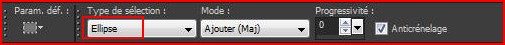 5 - Activer l'outil sélection rectangle configuré ainsi: Ellipse