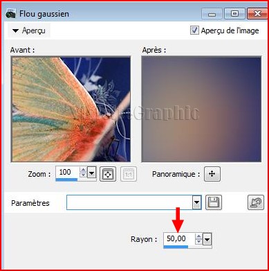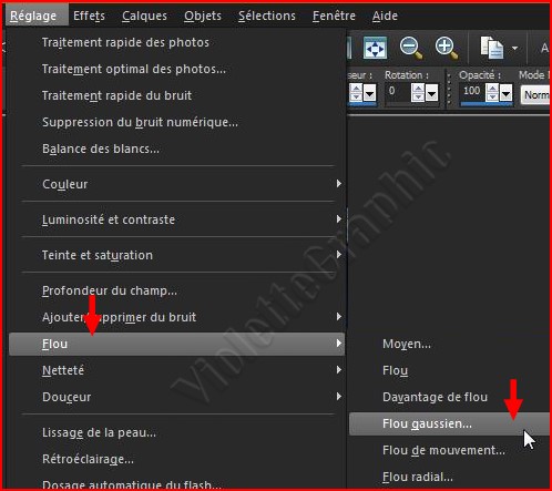 ** Réglages/Flou/Flou gaussien :