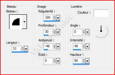 **Effets/Effets 3D/Biseautage intérieur réglages suivants: