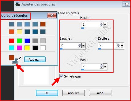 **Placer la taille : 2 pixels case symétrique cochée afin que les bordures ajoutées soient égales sur tous les côtés