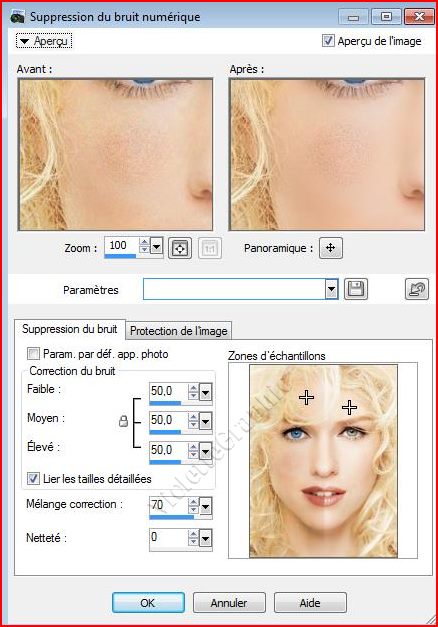10 - Réglages/Réduction du bruit de l'appareil numérique :