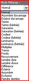 4 - Choisissez une option de la liste déroulante Mode Mélange Les modes de mélange sont les mêmes que ceux de le Palette des calques