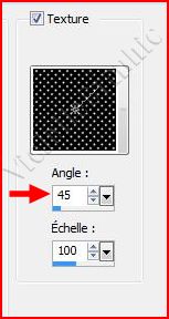 et choisir la texture Plaid configurée ainsi : angle : 45°/ Echelle : 100