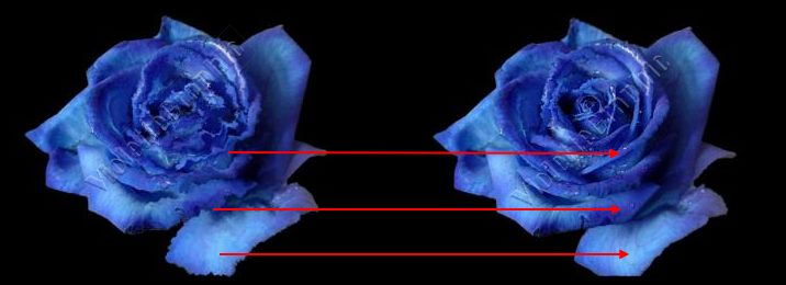 **Tirer : tire les pixels dans la direction du coup de Pinceau, créant un effet similaire à une traînée de peinture Placer le pinceau sur la fleur et tirer sur les pétales Ce mode de déformation n’est pas fonction du temps de pose du pinceau