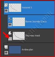 9 - Dans la palette des calques **ouvrir le calque du texte Fermer le calque de la courbe