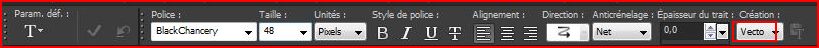 4 - Fermer l'avant-plan /Placer la même couleur ( ou texture ) en arrière-plan 5 - Activer l'outil texte configuré ainsi : alignement centré et vectoriel