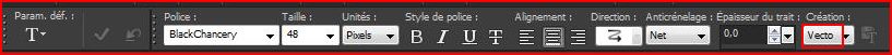 4 - Fermer l'avant-plan /Placer la même couleur ( ou texture ) en arrière-plan 5 - Activer l'outil texte configuré ainsi : alignement centré et vectoriel