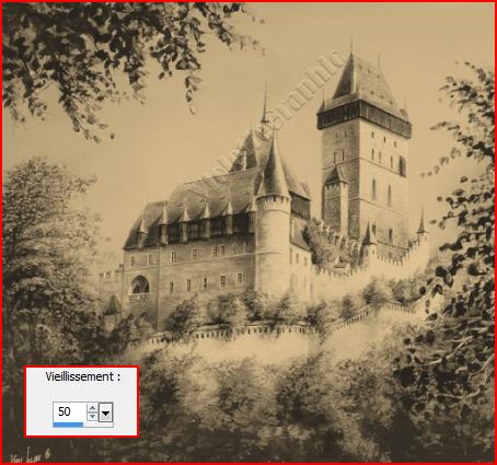 4 - Effets/ Effets artistiques/ Vieux journal La boîte de dialogue Vieux journal s'ouvre A vous de choisir l’intensité de l’effet Vieillissement que vous souhaitez valeur : 25
