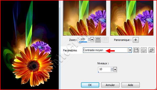 Niveaux : permet de diviser la plage des niveaux de luminosité (de 2 à 255) en un nombre d’incréments égaux Réduisez le nombre de niveaux pour obtenir une image dont l’aspect est plus plat