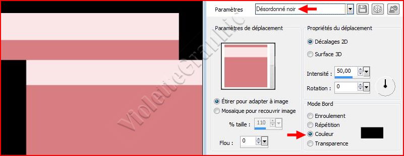 4 - Effets/Effets de distorsion/Paramètres de déplacement réglages suivants: Désordonné noir