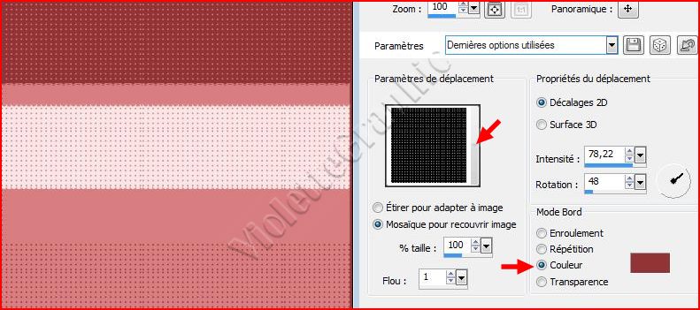 6 - Effets/Effets de distorsion/Paramètres de déplacement réglages suivants: an appliquant une texture