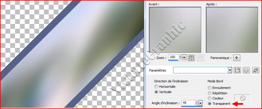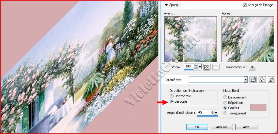 **Effets/Effets Géométriques/Perspective verticale Angle d'inclinaison: 45