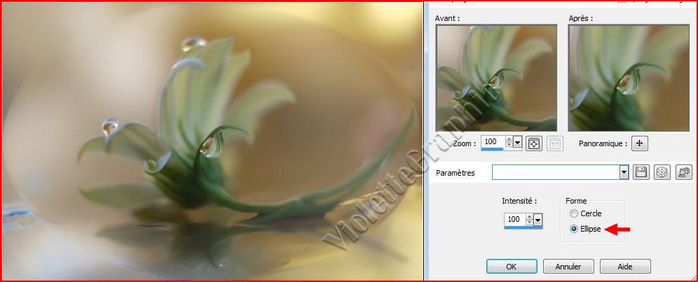 une bonne habitude : Toujours...faire un duplicata de votre image Dans la barre de menu /Cliquer sur Fenêtre/Dupliquer *Fermer l'originale *** Effets/Effets géométriques/Sphère : * Cercle coché * Intensité : 100