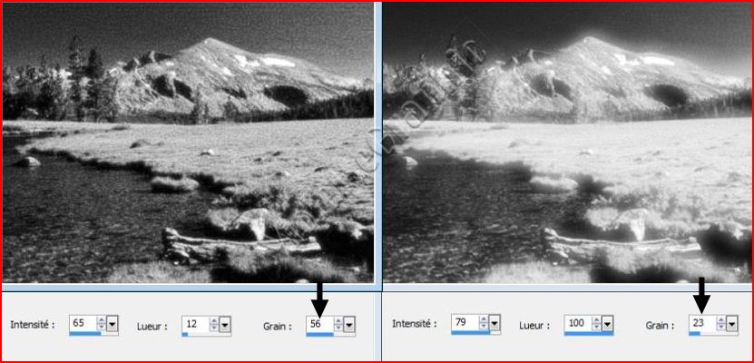 **Entrez ou définissez une valeur supérieure à 0 dans la zone Grain pour créer un effet de grain infrarouge plus réaliste sur la photo