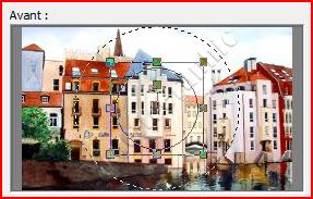 2 - Effets / Effets photo / Mise au point sélective La boîte de dialogue Mise au point sélective s’affiche : Vous pouvez agrandir la boîte de dialogue pour augmenter la taille des volets Avant et Après de la zone d’aperçu