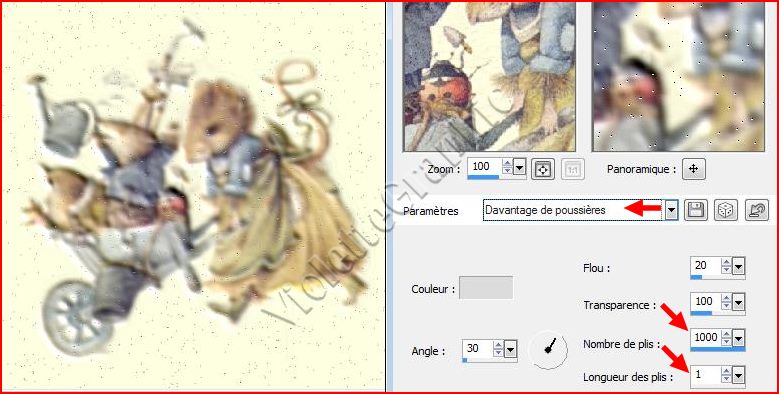 4 - Effets/Effets de Textures/Cuir Fin /Réglages suivants : Davantage de poussières : Nombre de plis : 1000 Longueur des plis : 1