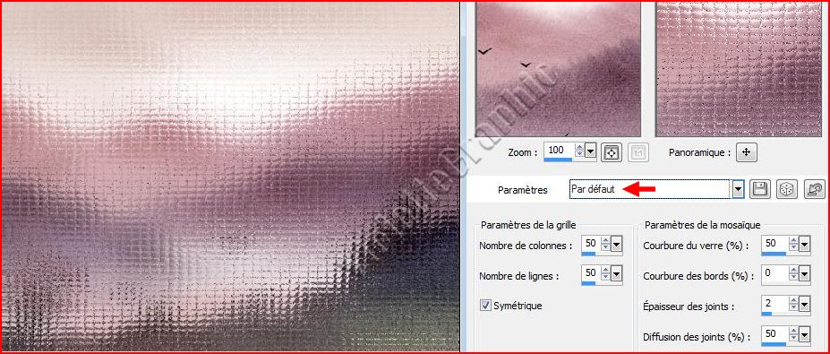 3 - Effets/Effets de Textures/Mosaïques de verre/Réglages par défaut: